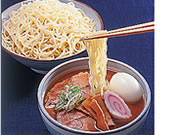 池袋「大勝軒」のもりそばつけ麺1955年(昭和30年)に誕生した「つけ麺」その「つけ麺」発祥のお店! 極太の麺にメンマ、超特大のチャーシューがついてます。 【 詳しくはこちら 】